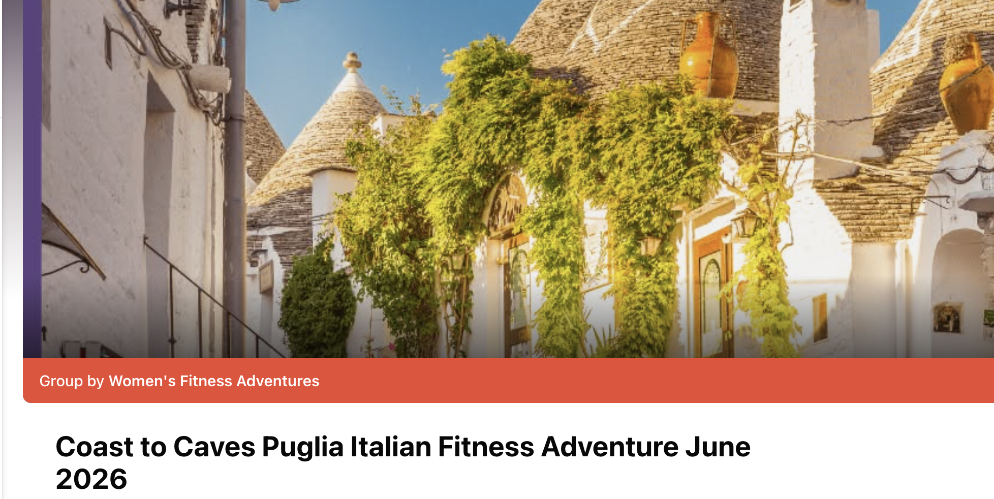 - Access to the closed Coast to Caves Puglia Italian Fitness Adventure Facebook Group – which provides your fitness accountability.