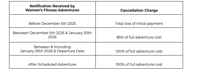 Payments: Start your adventure with us by securing your spot with a 35% non-refundable payment. We’ll provide the specific payment deadlines below for your convenience.